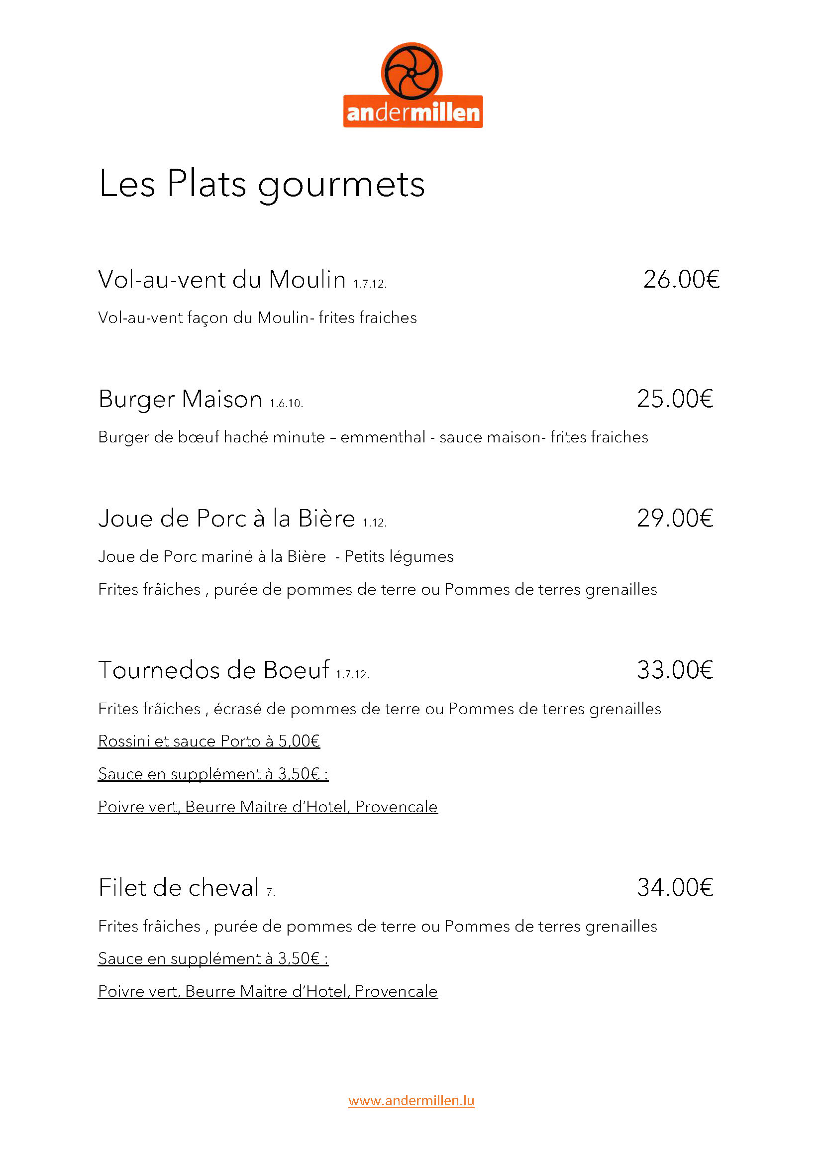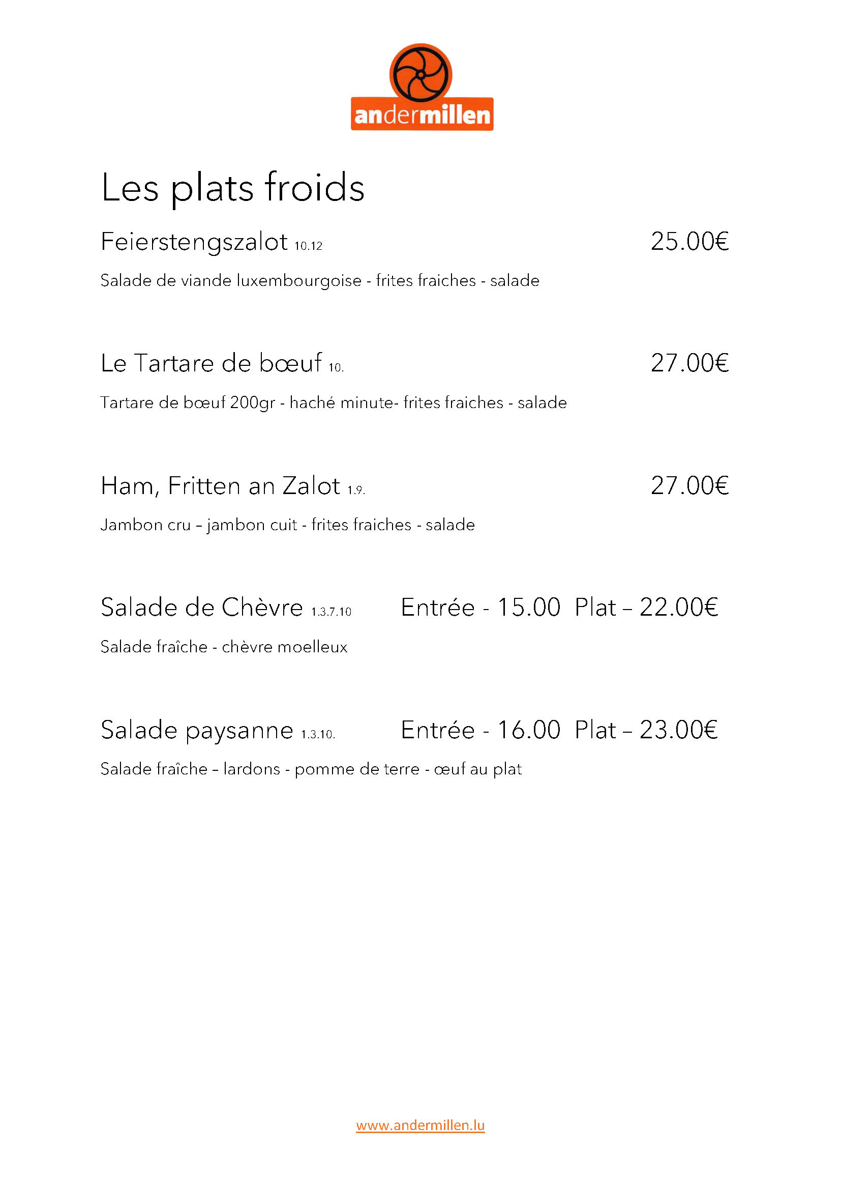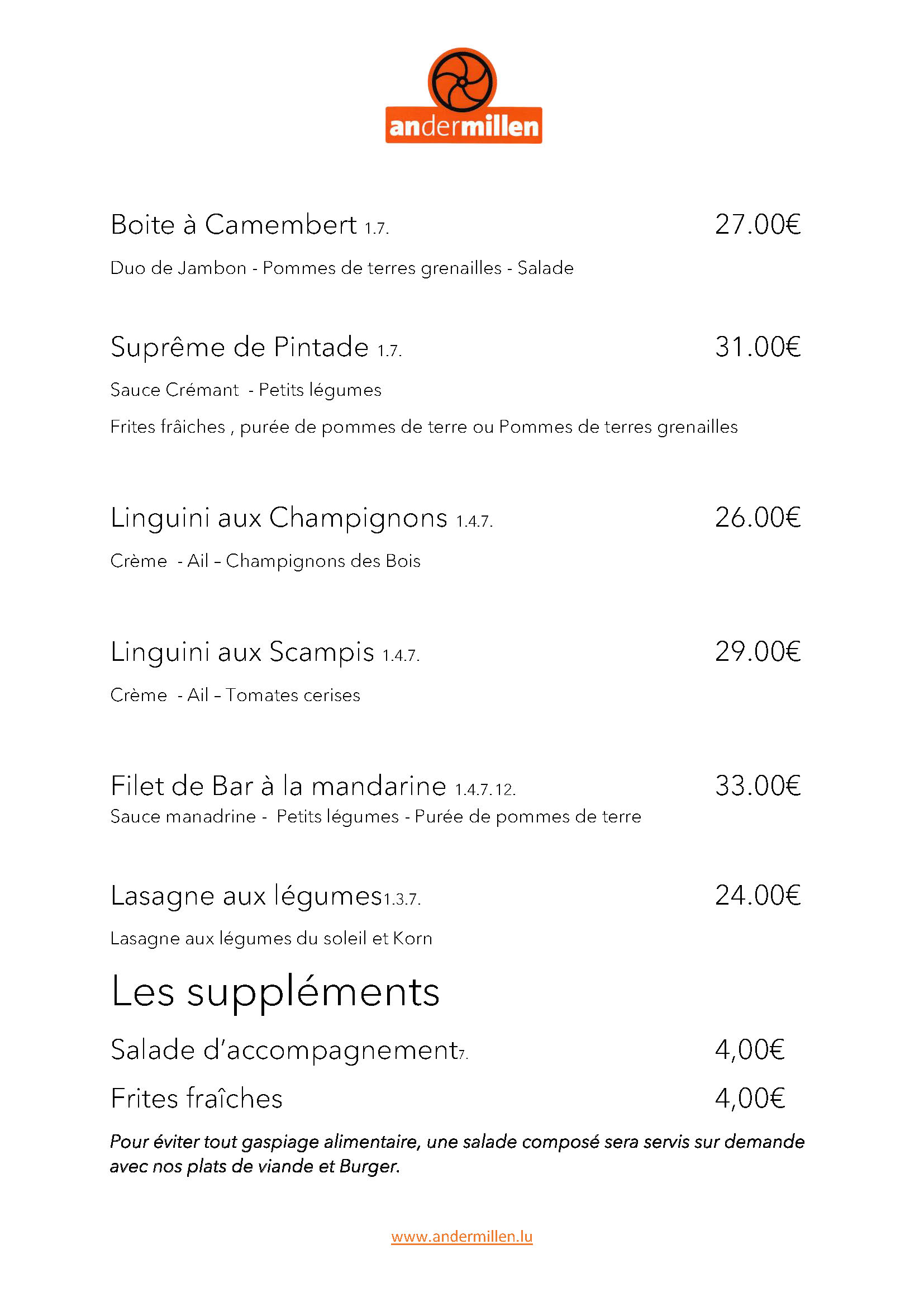 Carte brasserie