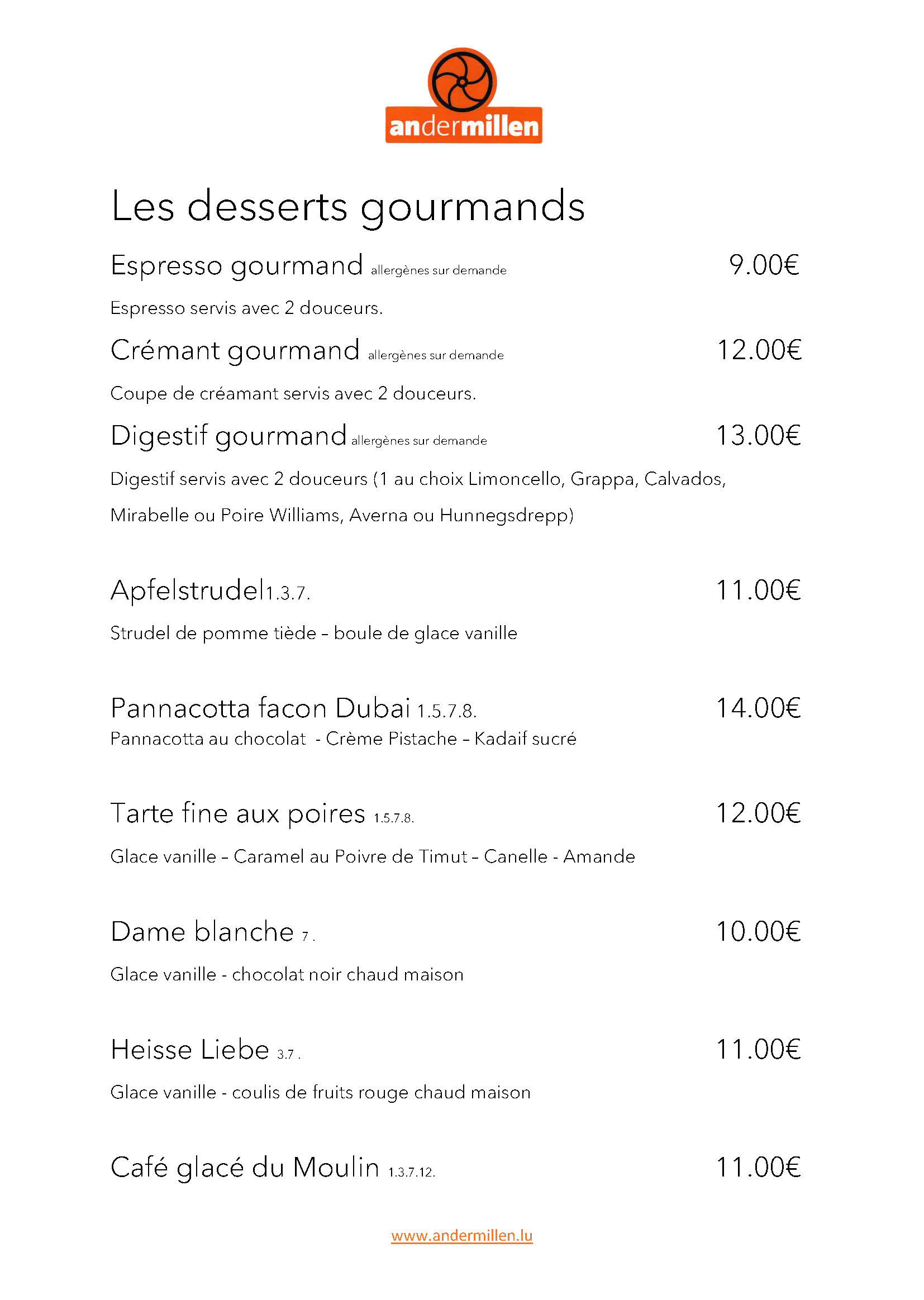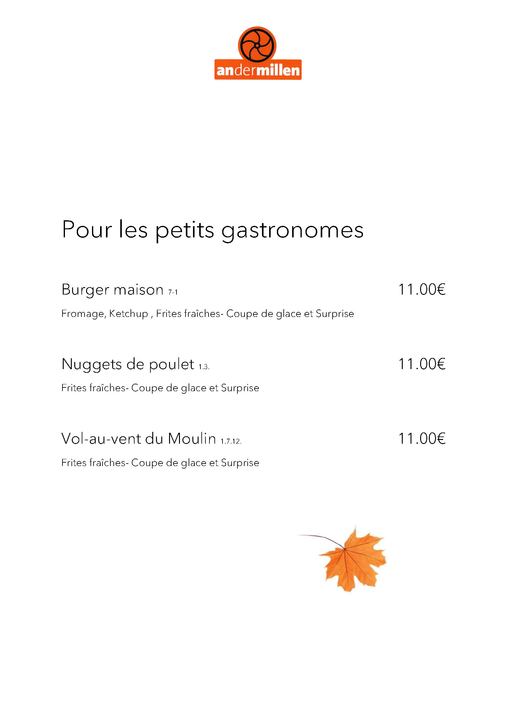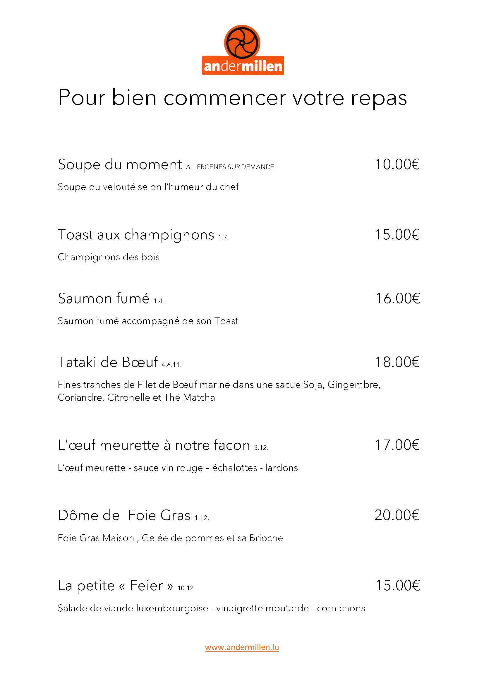 Carte brasserie